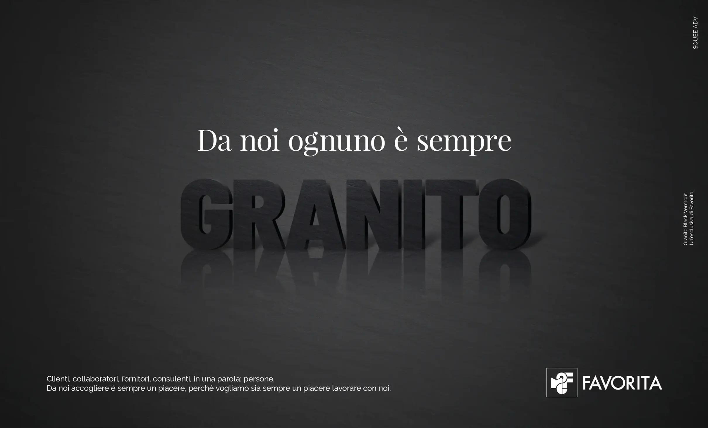 Troverete le creatività declinate sul sito, sui social, su materiali offline e costituiranno il nuovo vocabolario distintivo di Favorita Graniti. E se vedendole vi scappa un sorriso, anche il divertimento fa parte del pacchetto.