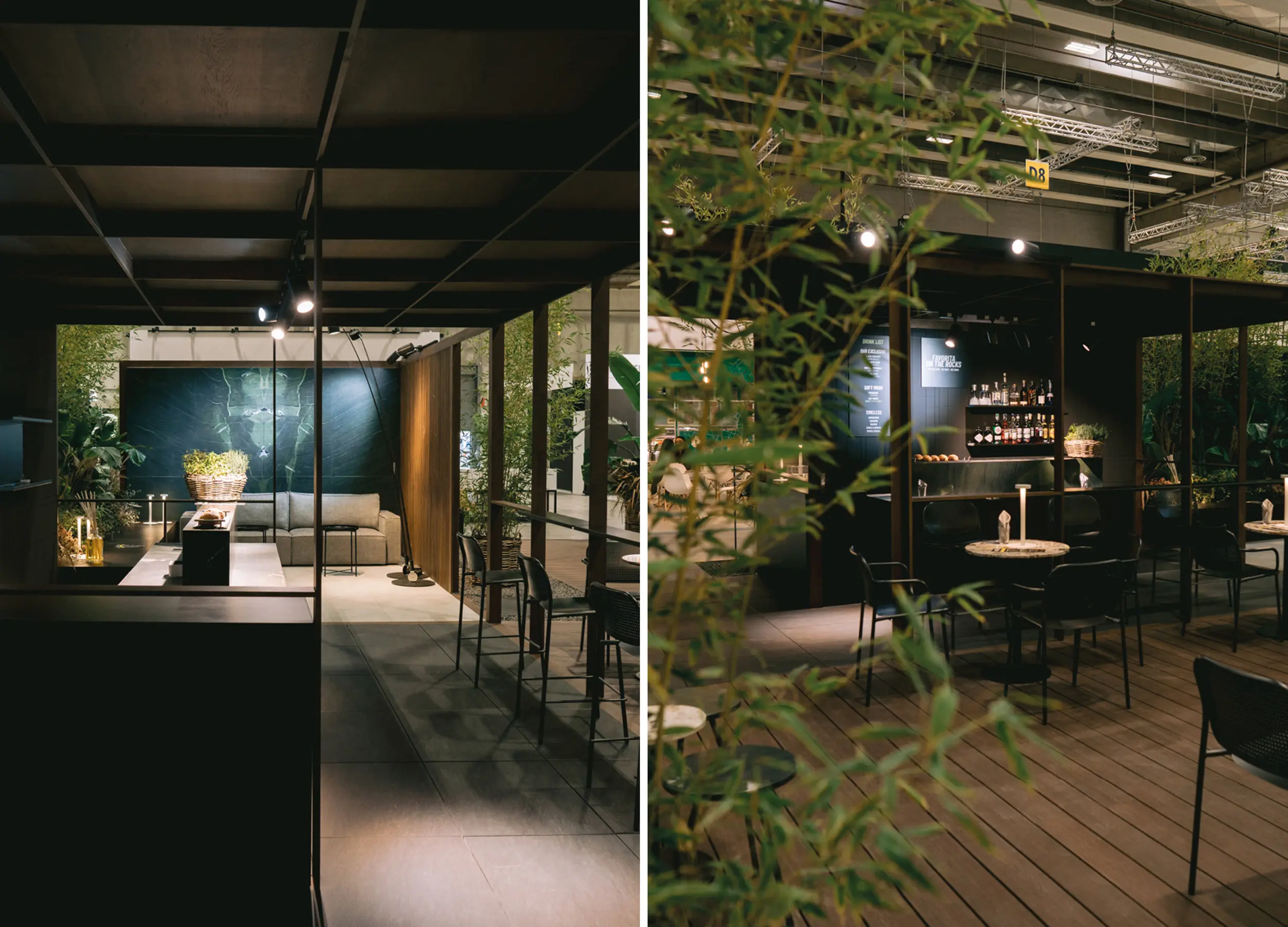 Tutto è nato dal concept dell’evento: uno stand progettato e realizzato per accogliere, per incontrare, per offrire un momento di relax e convivialità, degustando un ottimo cocktail ispirato ognuno a una pietra naturale.