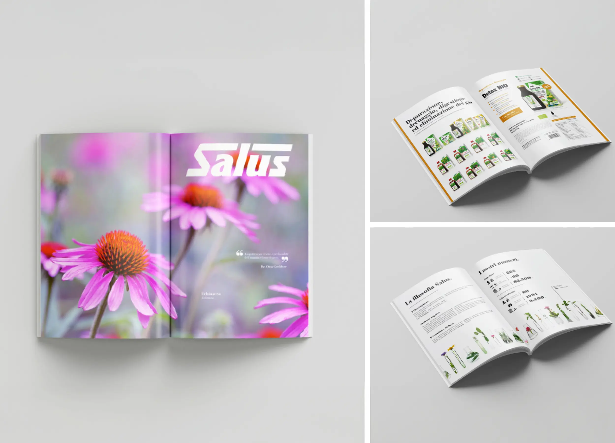 Evolvere la comunicazione di Salus è stato più che naturale, anzi: è stata la Natura stessa. Perché fin da subito ci ha orientati nelle nostre scelte, per rendere l'immagine del marchio aderente alla sua promessa. E la Natura è diventata materia delle pagine di catalogo, elemento dell'idea di stand, concetto delle campagne stampa per il lancio dei prodotti. Un'unica identità ribadita in tante forme.