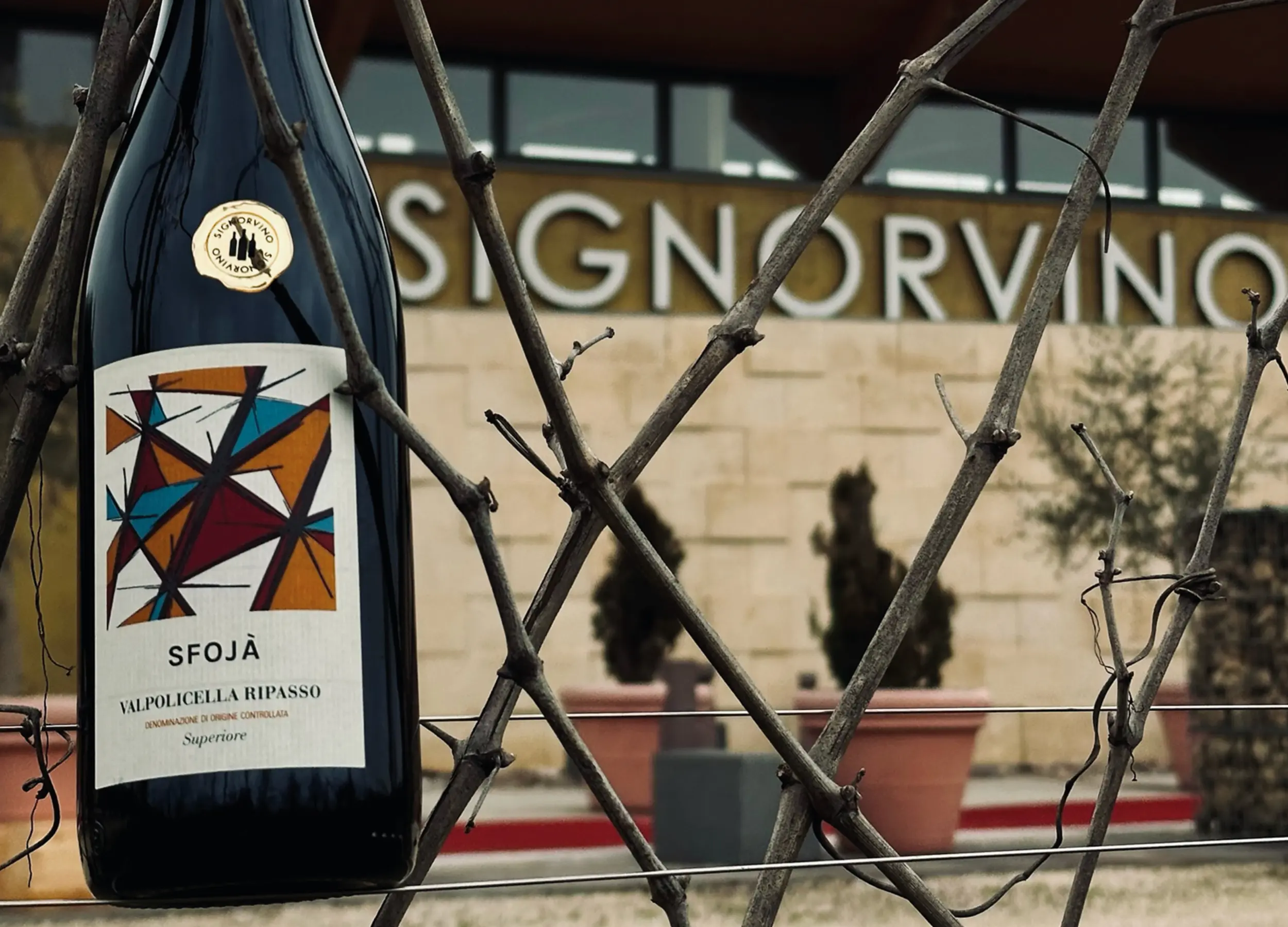 Un segno nato tempo fa, che ha preso la forma e la grafica della private label di Sfojà Valpolicella Ripasso: uno tra i vini più riconosciuti e diffusi del brand.