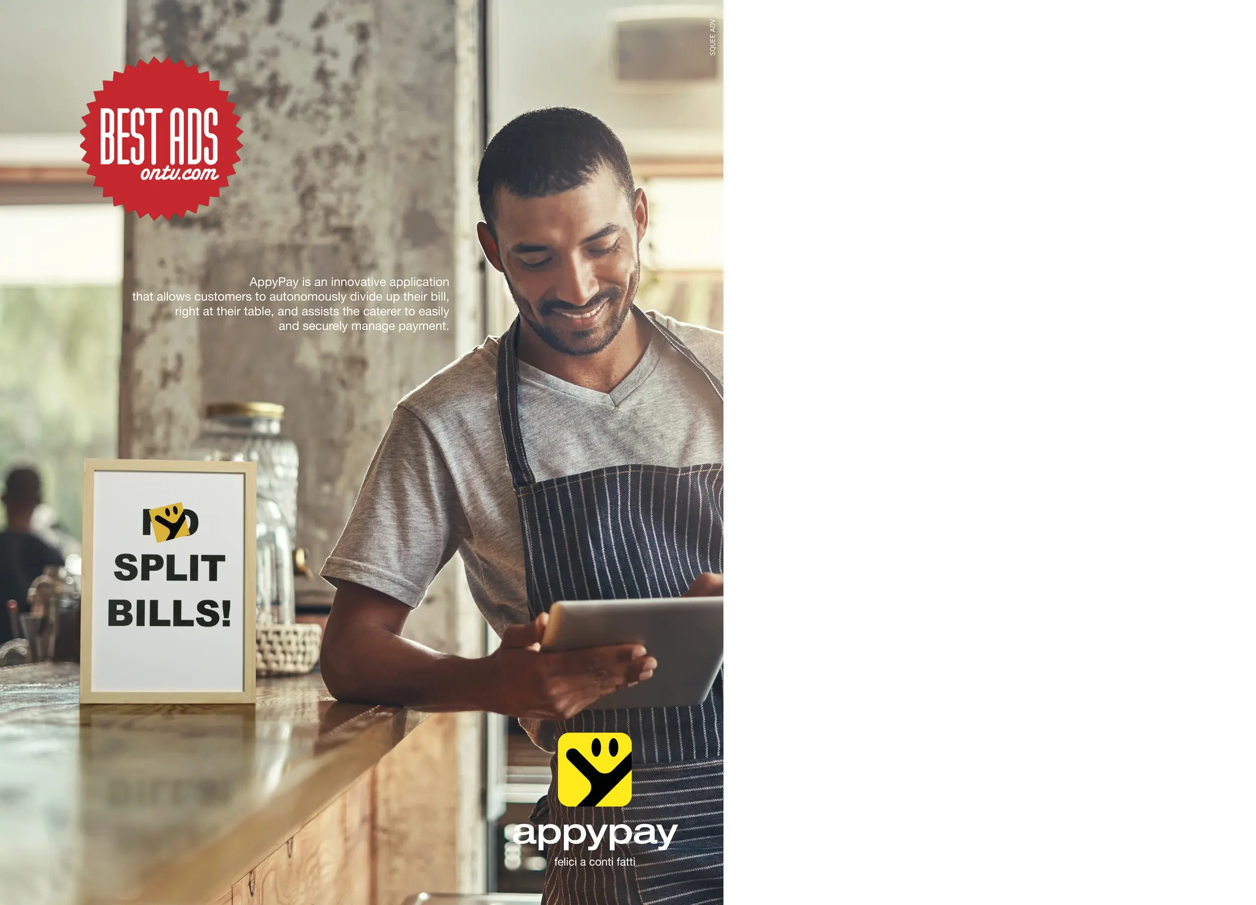 Apri l'ufficio, accendi il computer, accedi al sito di Best Ads. Toh: la nostra AppyPay è scelta tra le migliori campagne della settimana. Ci siamo arrivati anche con questo progetto. Su Best Ads: il portale che raccoglie le migliori adv al livello internazionale, ormai siamo di casa.